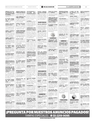MIÉRCOLES 6 DE NOVIEMBRE DE 2024 CIUDAD DE MÉXICO 55.22.19.90.95 CLASIFICADOS B! 21