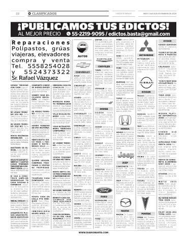 22 B! CLASIFICADOS CIUDAD DE MÉXICO MIÉRCOLES 6 DE NOVIEMBRE DE 2024