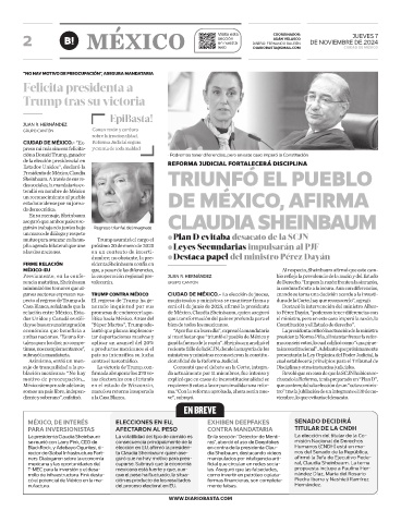 saje de tranquilidad a la po- La victoria de Trump, con- Comentó que el debate en la Corte, integra- Disciplina y otras instancias judiciales.