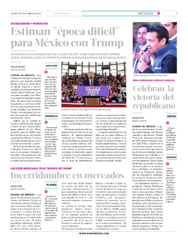 republicano Donald Trump, el tidumbre en anterior. expresó Julio Carranza, presi- mexicano debe concentrarse en