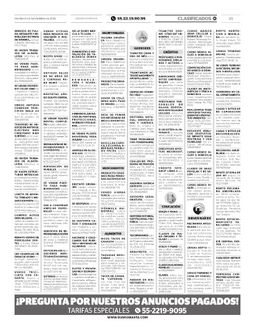VIERNES 8 DE NOVIEMBRE DE 2024 CIUDAD DE MÉXICO 55.22.19.90.95 CLASIFICADOS B! 21