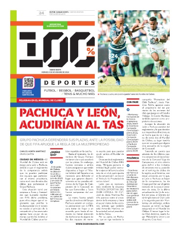 NUESTRA WEB ● Pachuca y León, uno podría quedar fuera del Mundial de Clubes
