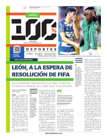 mos a esperar la resolución”, León apelará a la FIFA en de la cancha”, mencionó el di- que se celebre el sorteo del