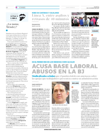 Méndez? GRUPO CANTÓN Soto, dijo que el peor horario para • Testigos afirman a Basta! que es un caos