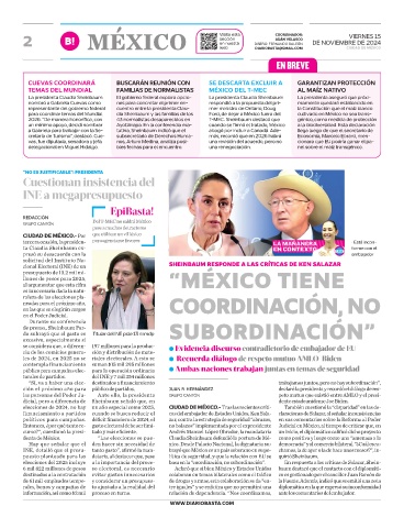 La presidenta Claudia Sheinbaum El gobierno federal explora opcio- La presidenta Claudia Sheinbaum La presidenta aseguró que próxi-