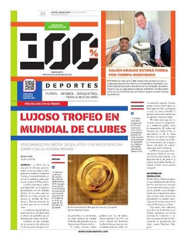 ESTÁ BAÑADO EN ORO DE 24 QUILATES Y FUE HECHO EN CON- mundial en futuro del futbol de clubes”,