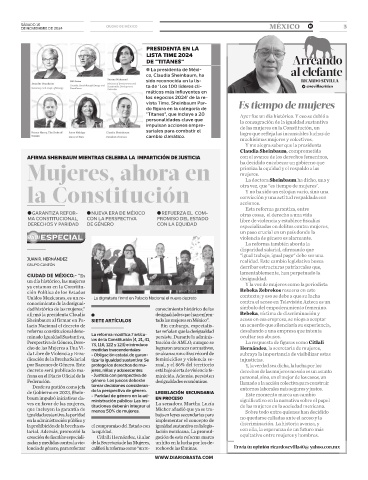 Sheinbaum al firmar en Pa- SIETE ARTÍCULOS tado las mujeres en México”. acoso en esa empresa, se niega a aceptar