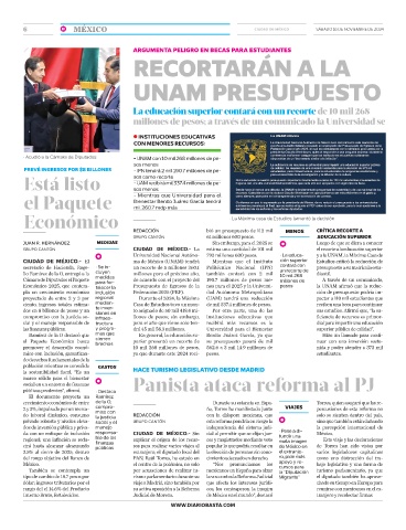 CIUDAD DE MÉXICO.- El ma de México (UNAM) tendrá Mientras que el Instituto ción superior Estudios criticó la reducción de