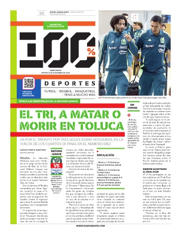 noche en el estadio Nemesio Fecha: Martes tencia de la Liga de Naciones • México 3-1 Honduras, y en todas se ha quedado en