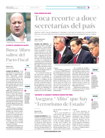 (Sectur) y Secretaría de Relacio- Este movimiento plantea dar la inseguridad, la Sedena tendrá IMPIDE