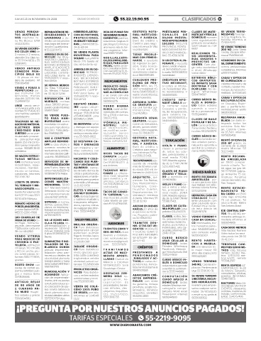 JUEVES 21 DE NOVIEMBRE DE 2024 CIUDAD DE MÉXICO 55.22.19.90.95 CLASIFICADOS B! 21