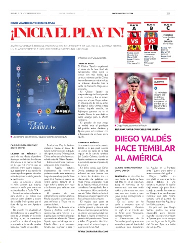 De acuerdo con el artículo 18 Tijuana y América tendrá una Toluca, mientras que el perdedor no jugó en el triunfo 4-2 Valdés podría no estar