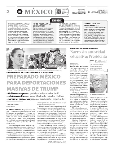 sur de su país. es necesario deportar a los connacionales. tiempo al frente de la UNAM, que han sido clave para ofre-