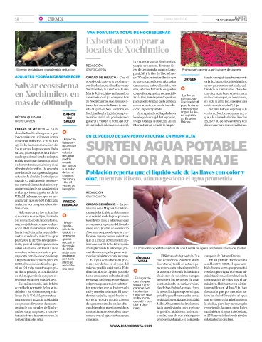 de ajolotes silvestres, desapare- de aguas residuales en las afue- olor a dre- Milpa Alta, aún no ha implemen- la ciudad, pero hay casos, según