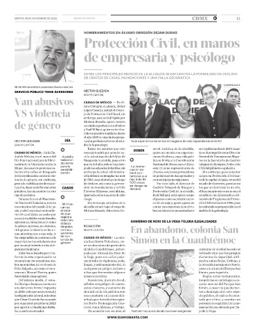 HÉCTOR QUEZADA DÍA ración profesional es en el estu- • Nula experiencia tienen los encargados de esta dependencia en la AO