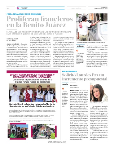 CIUDAD DE MÉXICO. — En la alcal- ne-viene” operan con total libertad, que los franeleros apartan la vía pú-