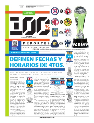 Liga MX hizo oficial los ho- años después. Juan Carlos deberá enfrentar a los Raya-