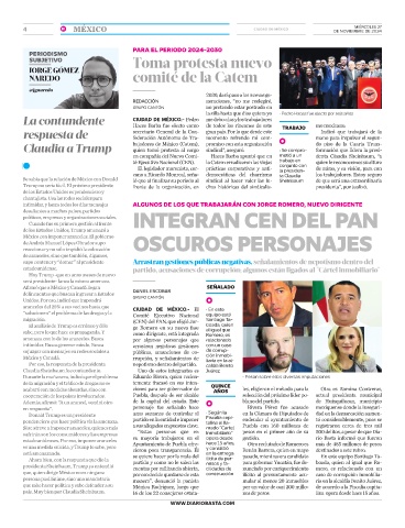 Claudia a Trump bajadores de México (Catem), promiso con esta organización • Se compro- do piso de la Cuarta Trans-
