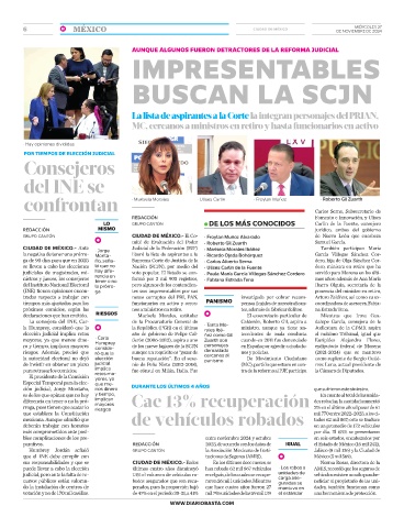 (INE) tienen opiniones encon- ga tes son impresentables por sus ponencia del ministro en retiro,