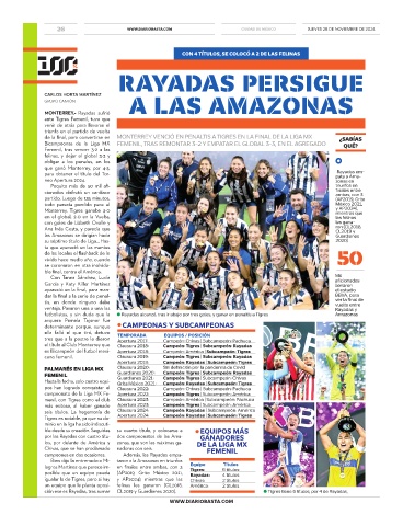 por las Rayadas con cuatro títu- dos campeonatos de las Ama- GANADORES