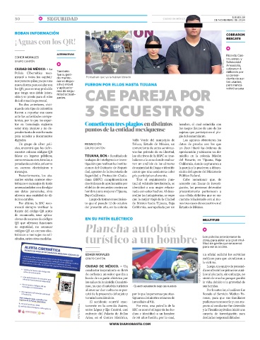 Por último, la SSC reco- to que el pasado 12 de octubre de México hacia Tijuana, Baja nos tres casos de secuestro en el