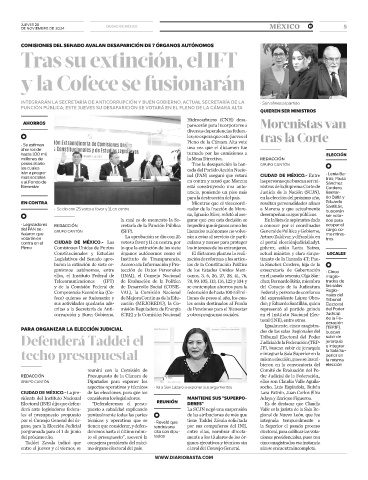 Legislativos del Senado apro- Instituto de Transparencia, zación de reformas a los artícu- tizante de la llamada 4T; Pau-