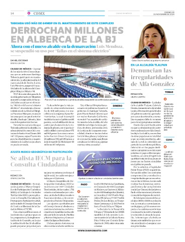 to, “debido a fallas en el sistema Es de señalar que la más pe- Esta Alberca Olímpica fue es- DINERO de la alcaldía Tlalpan, Gabriela • Gabriela