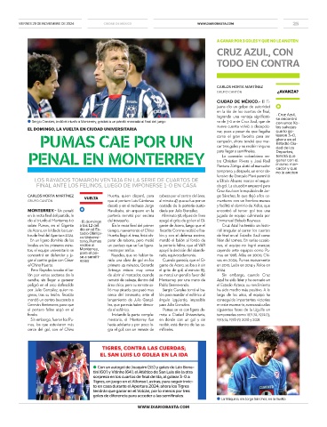 el portero felino atajó en el do el esférico. Pumas se va con ligera de- siguientes fases de la Liguilla en