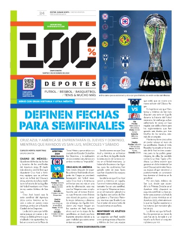 2024, además de la llave inédi- Ida cano, Cruz Azul y América se venció a América en Liguilla, Por otro lado, Atlético de