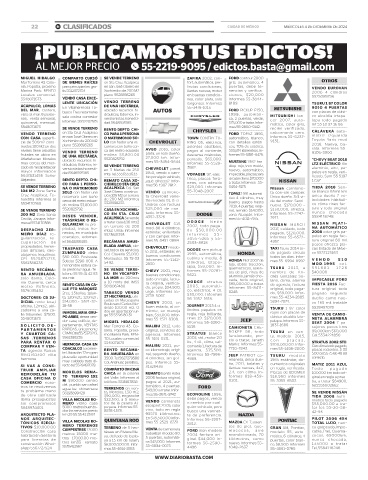 22 B! CLASIFICADOS CIUDAD DE MÉXICO MIÉRCOLES 4 DE DICIEMBRE DE 2024