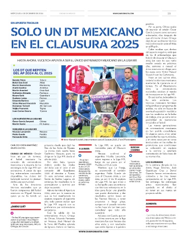 ● Víctor Manuel Vucetich, único mexicano para el Clausura 2025; 17 son DT extranjeros y en otros casos por no verse