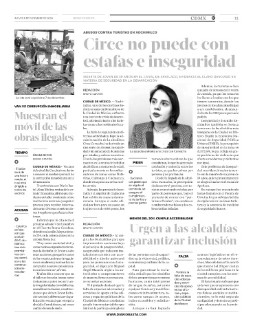 media, el la corrupción inmobiliaria en la vitas, Caltongo y Cuemanco, • Xochimil- Desde la llegada de la alcal- 19 años, quien presuntamente