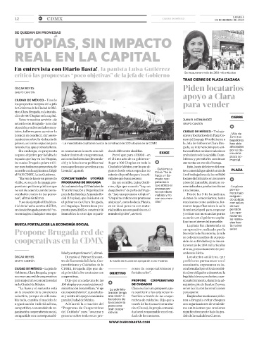 en la Ciudad de México. 100 utopías que construirá su ad- DE CUIDADOS ministración de Sandra Cuevas,