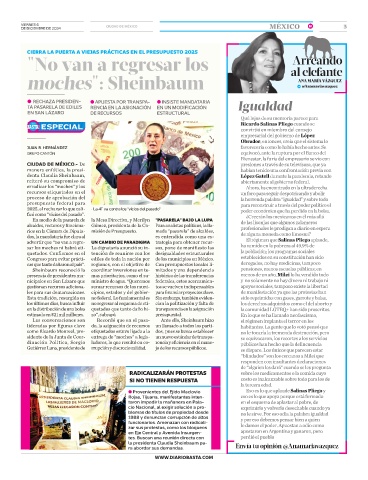 ● RECHAZA PRESIDEN- ●APUESTA POR TRANSPA- ●INSISTE MANDATARIA