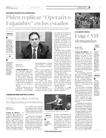 Nacional no REDACCIÓN cartas fuertes” y continuar realizó el “Operativo Enjam- Sheinbaum, y paralelamente cremento