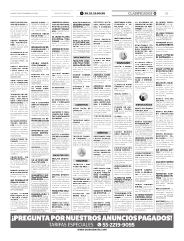 LUNES 9 DE DICIEMBRE DE 2024 CIUDAD DE MÉXICO 55.22.19.90.95 CLASIFICADOS B! 21