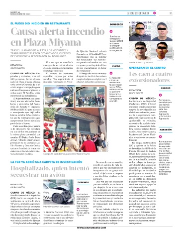 jados de Plaza Miyana, ubicada incendio registrado en Aveni- sótano 1 del centro comercial. restauran-