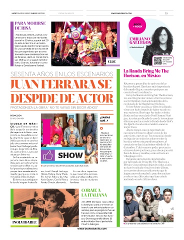 se sabe que se debe a su sa- ● Con un elenco de primeros actores Juan dice adios México y no podemos dejar de oirlos, si aún