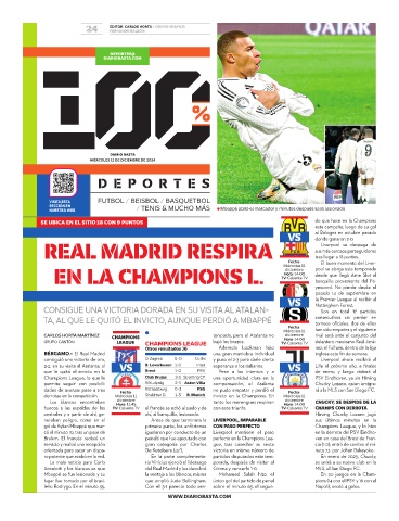 CARLOS HORTA MARTÍNEZ CHAMPIONS tenciado, pero el Atalanta no diciembre rival será ante el conjunto del