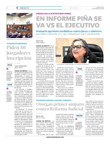 En entrevista, el presiden- Judicial y que se violan abierta- más relevantes con el gobierno: y las fiscalías. Según Piña, Mé-