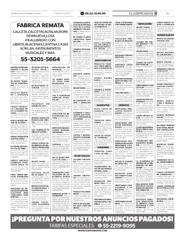 VIERNES 13 DE DICIEMBRE DE 2024 CIUDAD DE MÉXICO 55.22.19.90.95 CLASIFICADOS B! 21