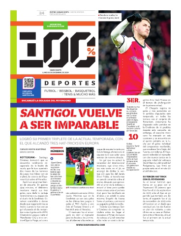 SANTIGOL VUELVE Santigol en goles y tres asistencias en