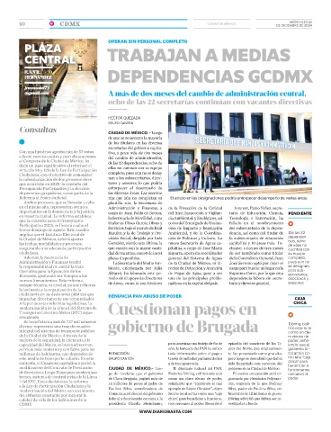 las fechas, modalidades y procesos, González, siendo esta última, la nueva Secretaría de Aguas ca- capitalina y 10 áreas más. In- de ellas no