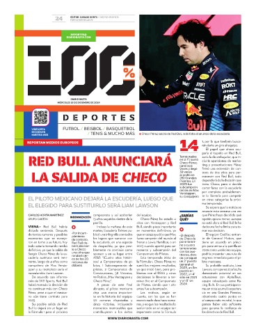 NUESTRA WEB ● Checo Pérez saldrá de Red Bull, solo falta el anuncio de la escudería