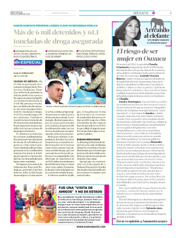 García Harfuch subrayó la im- como visitas casa por casa, fe- afirmó la presidenta Claudia la fiscalía estatal no ha dado más reportes a la