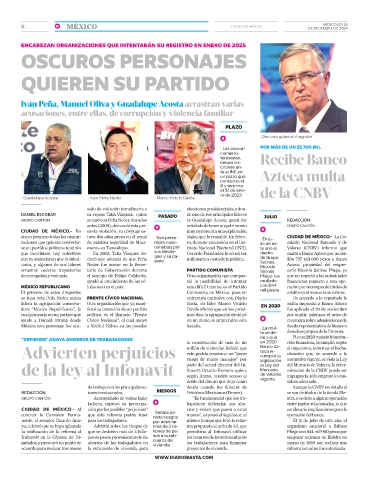 dora “México Republicano”, la festó su intención de ser partido Dávila afirmó que en los próxi- fue aplicada el 29 de noviembre
