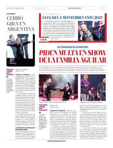 conciertos en los que se presentó. redes socia- serían sacados o multados con 12, 500 pesos. con todo el relajo que les va a gustar", señaló