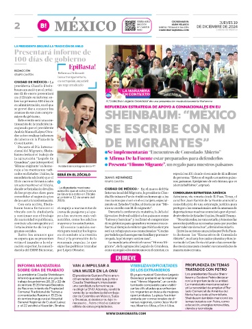 cional del Migrante, Shein- ●Se implementarán “Encuentros de Consulado Abierto”