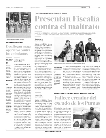 •Se llegó a cias, así como elementos de la la Fiscalía General de Justicia to animal. Durante la confe- la capital hay dos instituciones