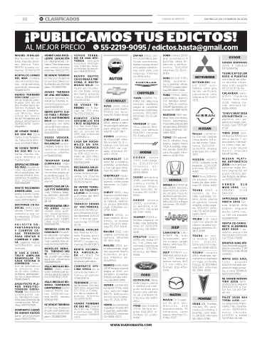 22 B! CLASIFICADOS CIUDAD DE MÉXICO VIERNES 20 DE DICIEMBRE DE 2024